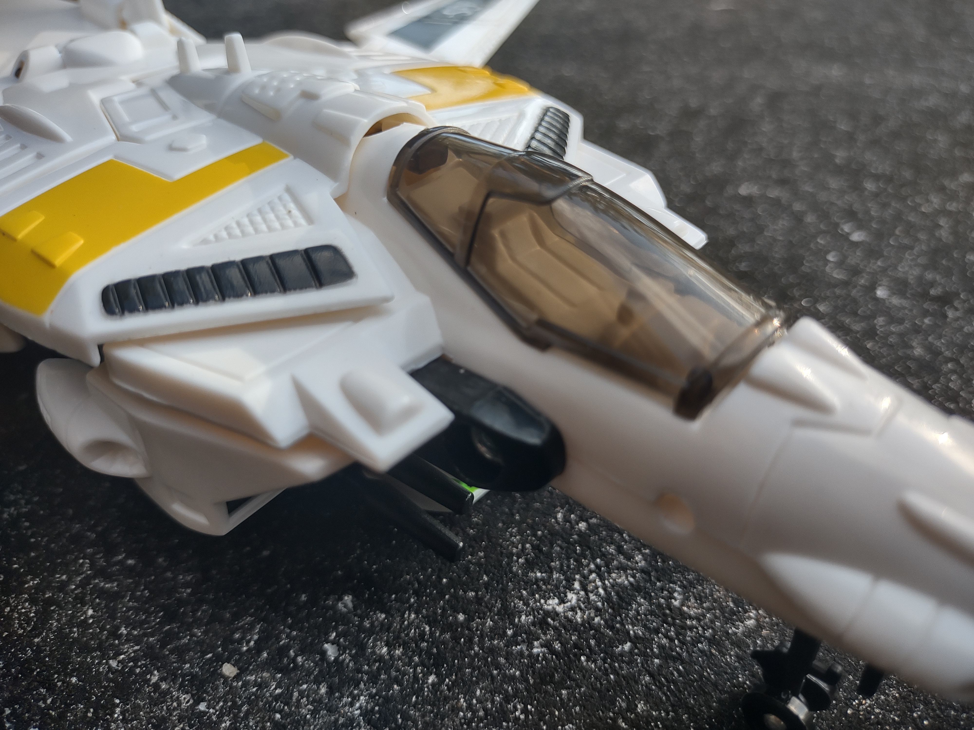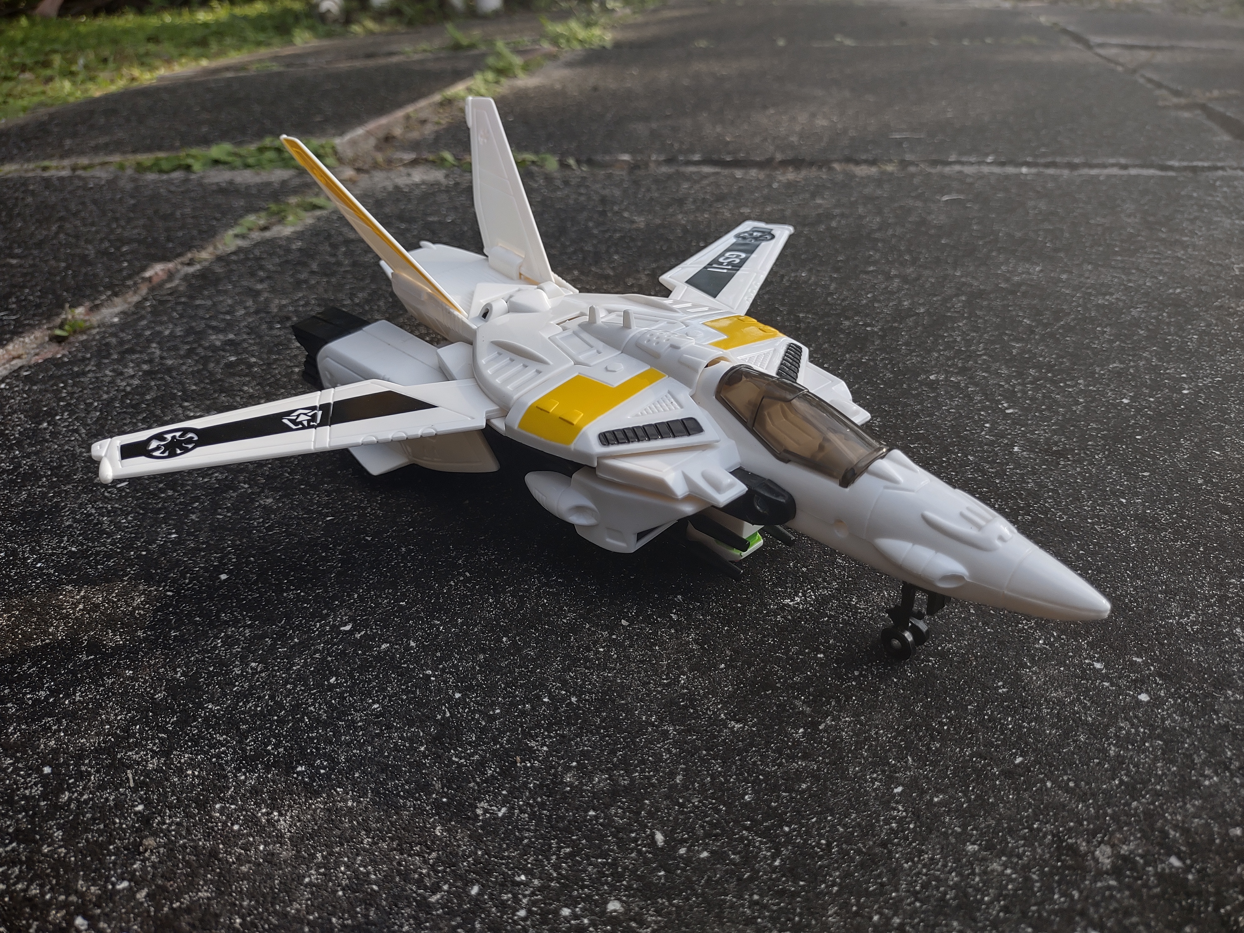 But enough about the differences between this KO and an authentic 1/55 chunky monkey, what's the quality like? Really damn good. The plastic quality isn't too far off from something like a Transformer (so it's absolutely not the super cheap KO-quality plastic), it retains all the articulation points of the real thing (including all the ratchet joints!), it transforms exactly the same. Hell, it even retains the spring-powered pop out landing gear for fighter mode. I wouldn't say this is one of the greatest and highest quality KOs ever made, but it's definitely in the tier of 'if you buy this to experience the 1/55 Takatoku design (like I did) because you don't wanna drop the money on a real one just yet, you're not gonna feel like you're getting a totally crap KO that'll probably break the first time you try to transform it'.
