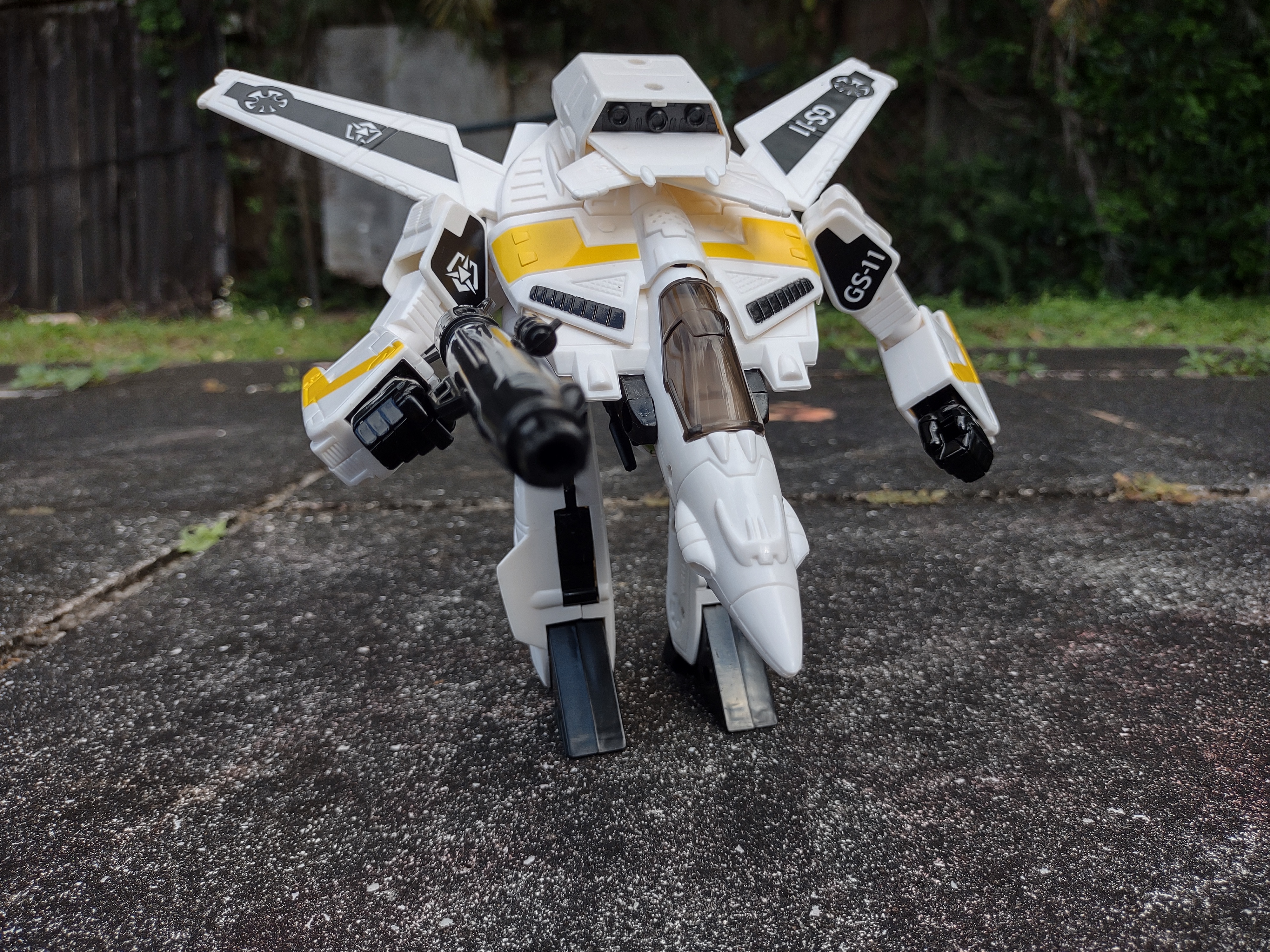 In an era where the expected articulation was 'ability to rotate arms forward at shoulder so kids can point the weapons forward', here comes in Takatoku giving kids a mecha toy that not only flawlessly transforms between three modes but when in battroid mode they can rotate the head around, swing the arms not only forward but out to the side at the shoulder, rotate the lower arm at the elbow, bend the elbow, move the legs forward and back thanks to the gerwalk joint, and bend the knees. Sure, it seems simple compared to nowadays but in the early 1980s? Actually insane levels of articulation.