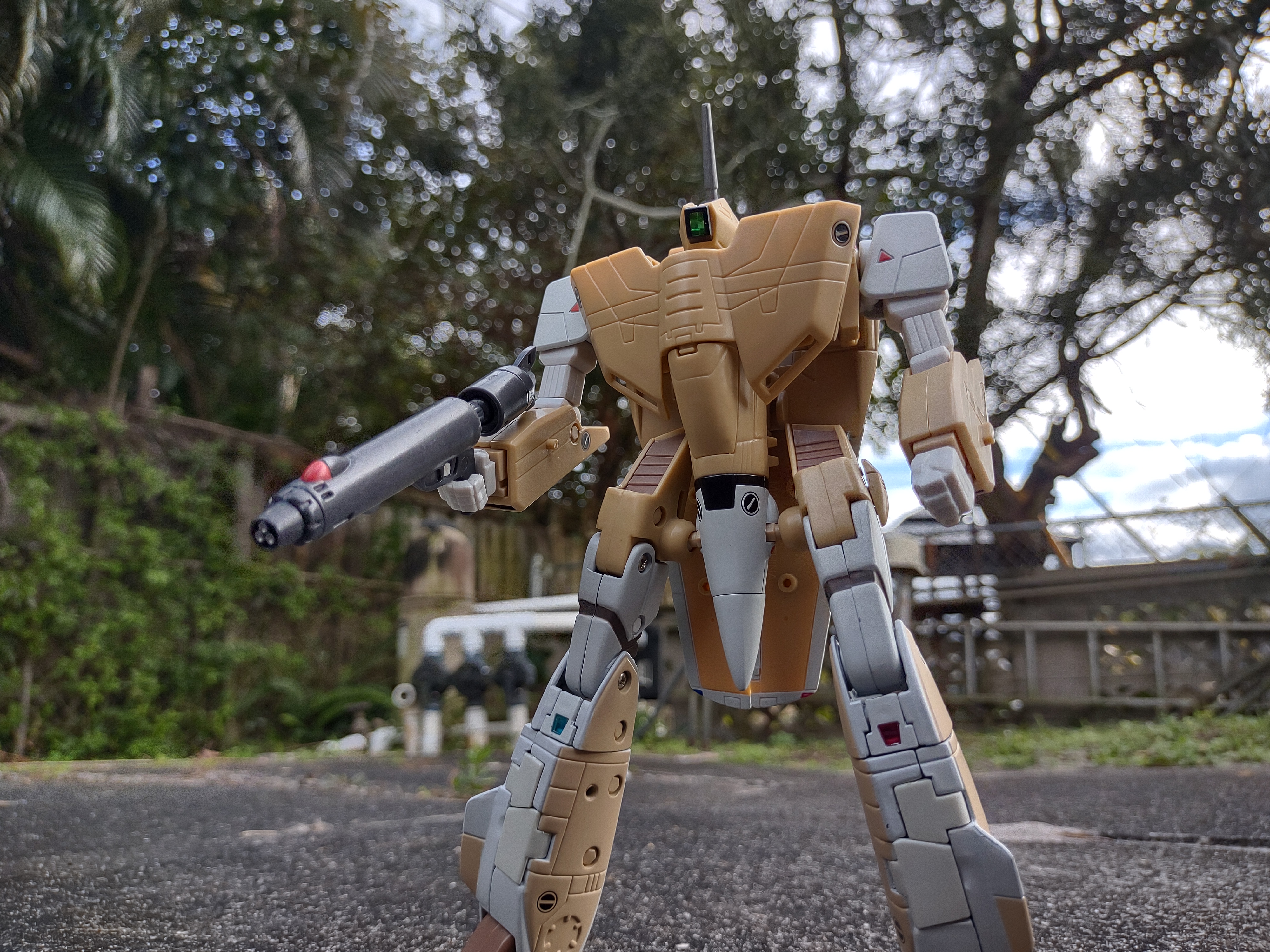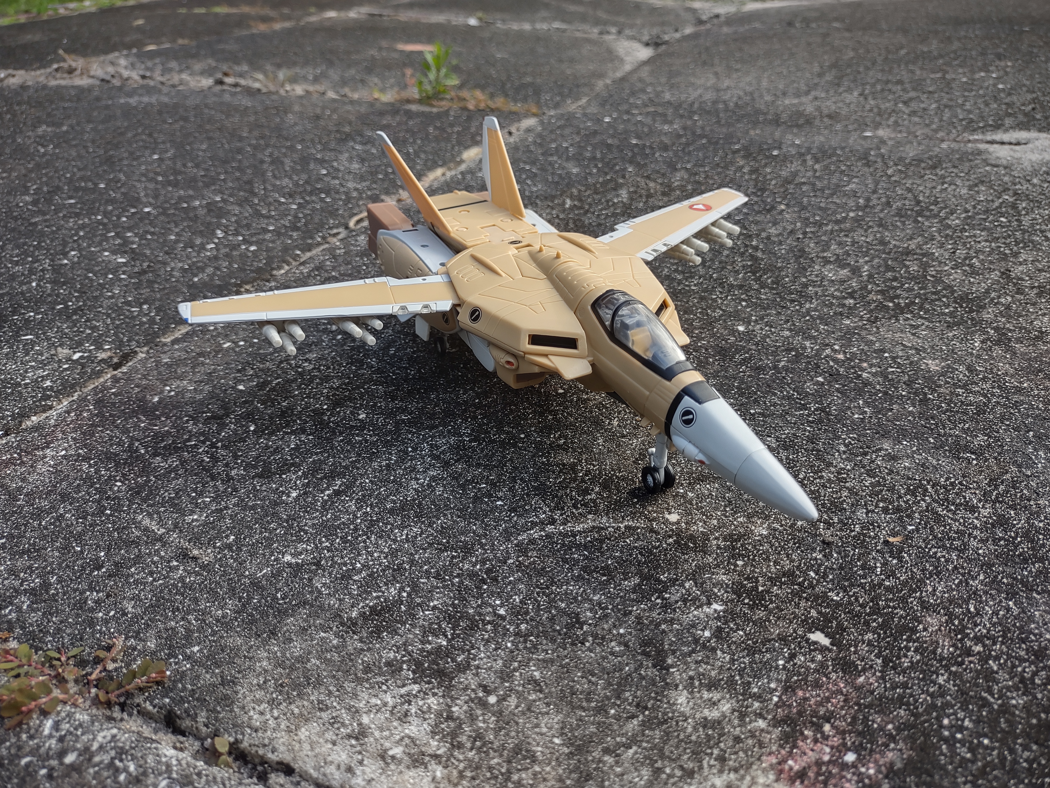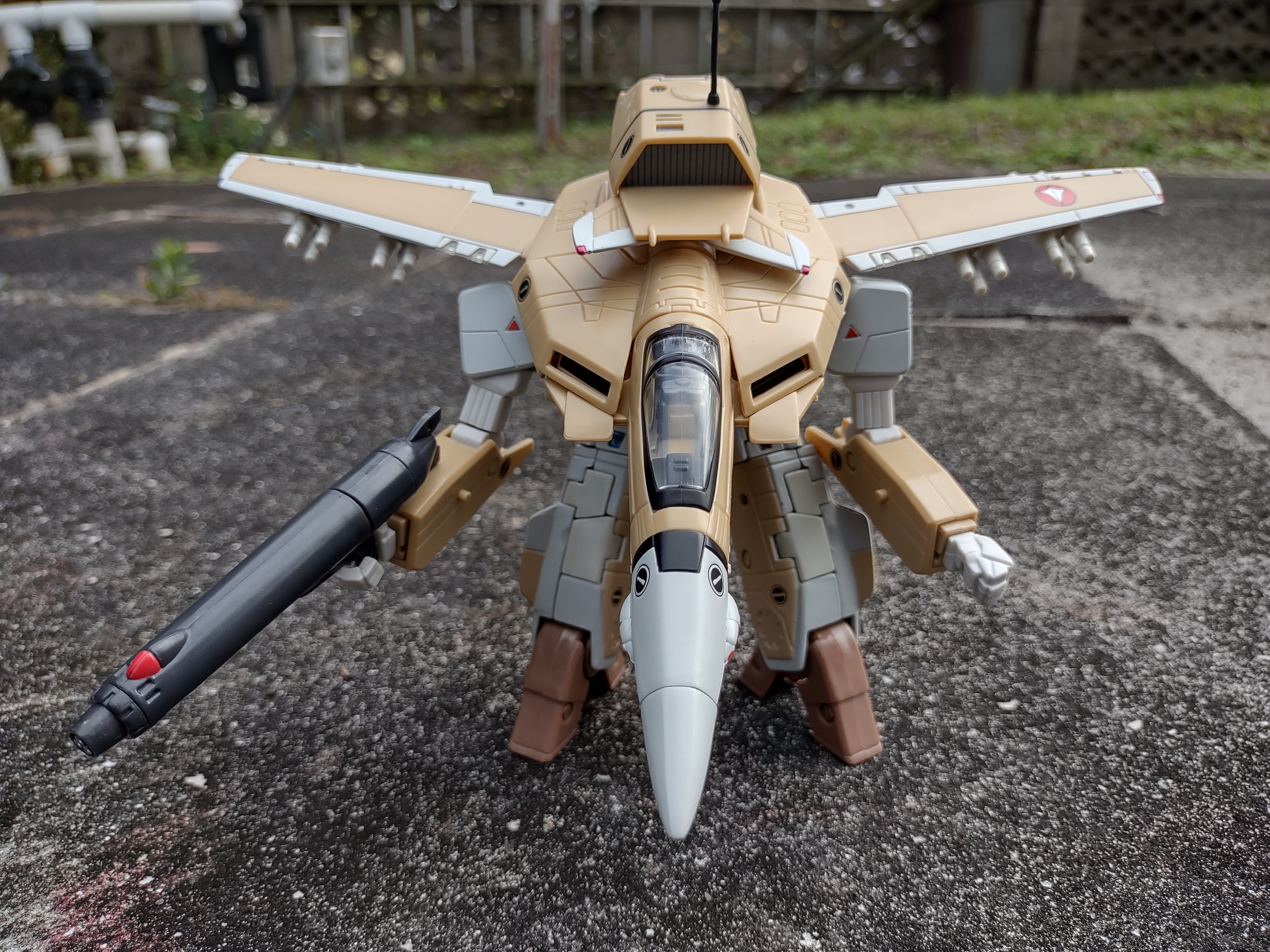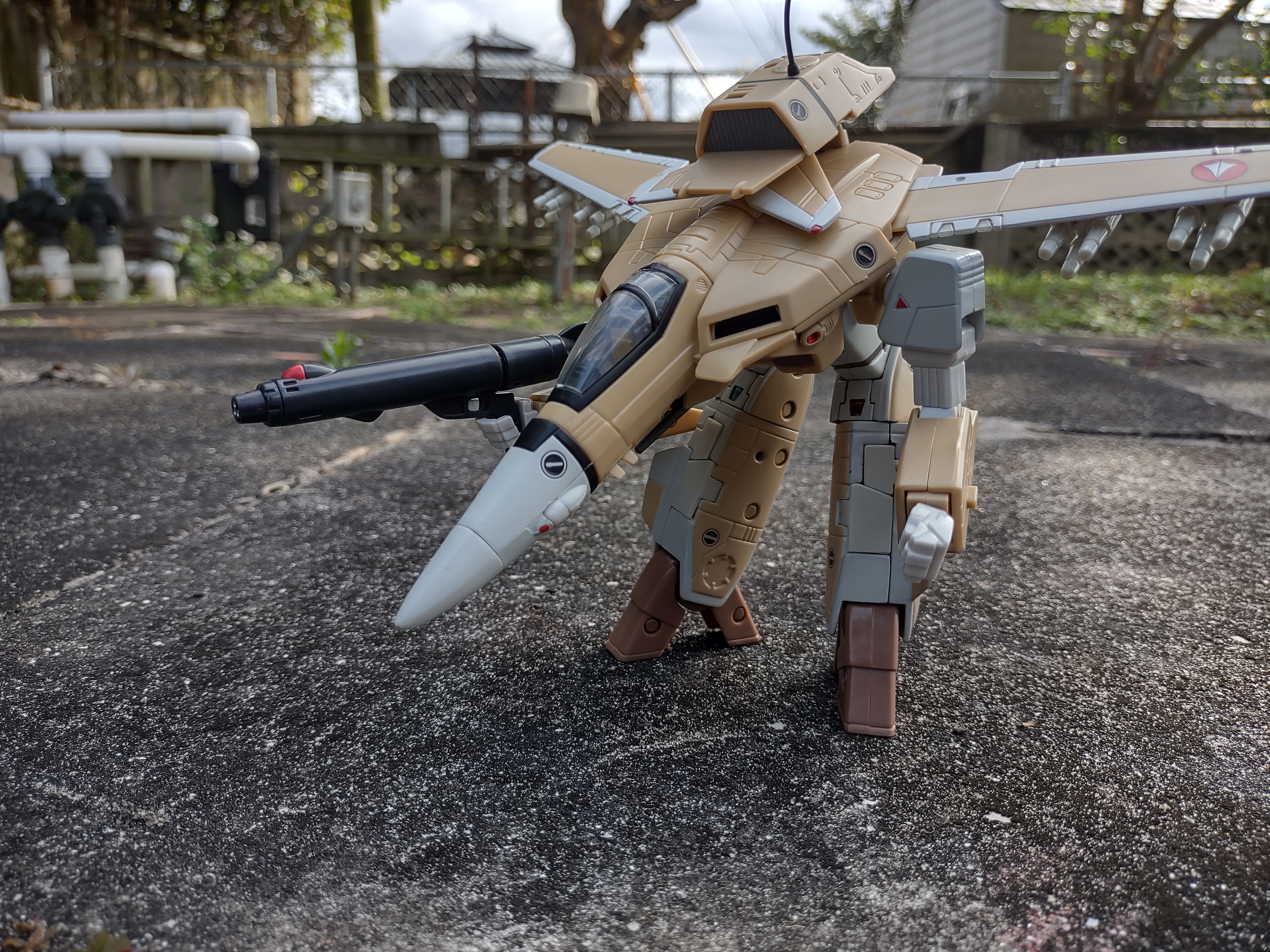 Okay, so let's start with the positives here: I think the deco on the VF-1A is absolutely gorgeous. You might look at it and think 'but it's just tan and white, that's kinda bland' but that's the point! The VF-1A was the mass produced version of the VF-1 Valkyrie. This is not one of the flashy special Valks our heroes were piloting - this is the one piloted by just regular pilots in the UN Spacy that they had numerous ones. And I think the whole design nails that perfectly, absolutely gorgeous mass produced colors.