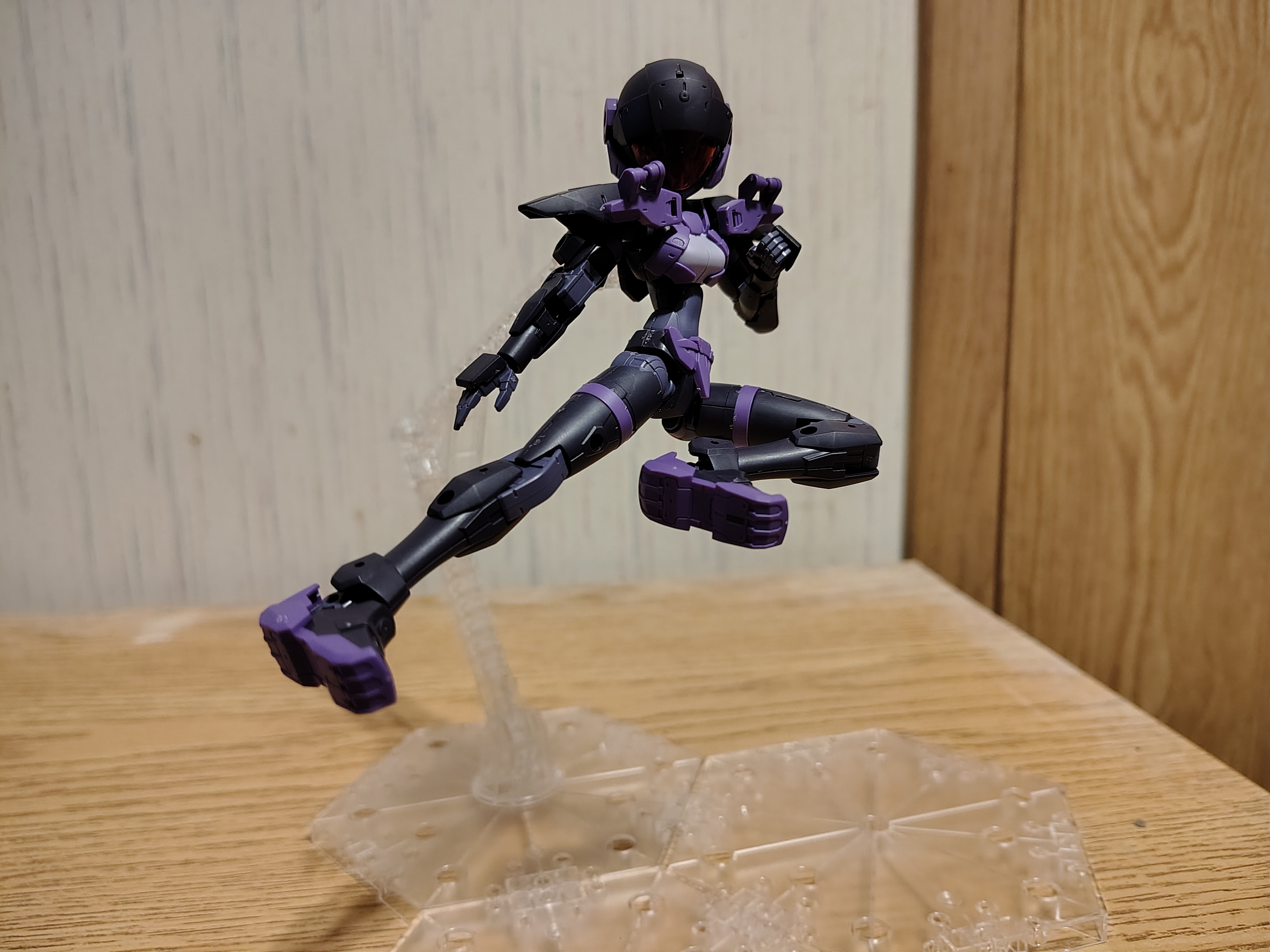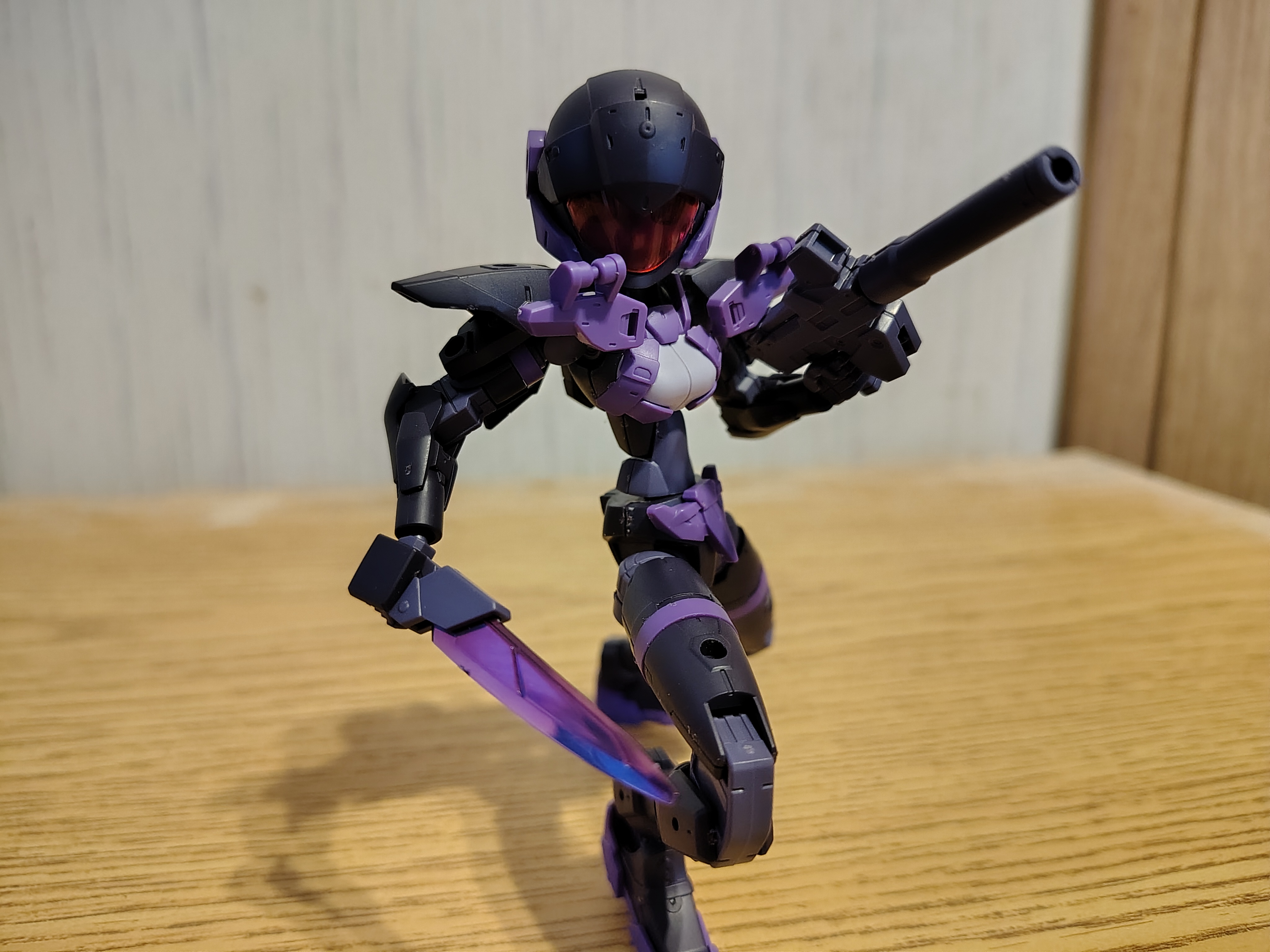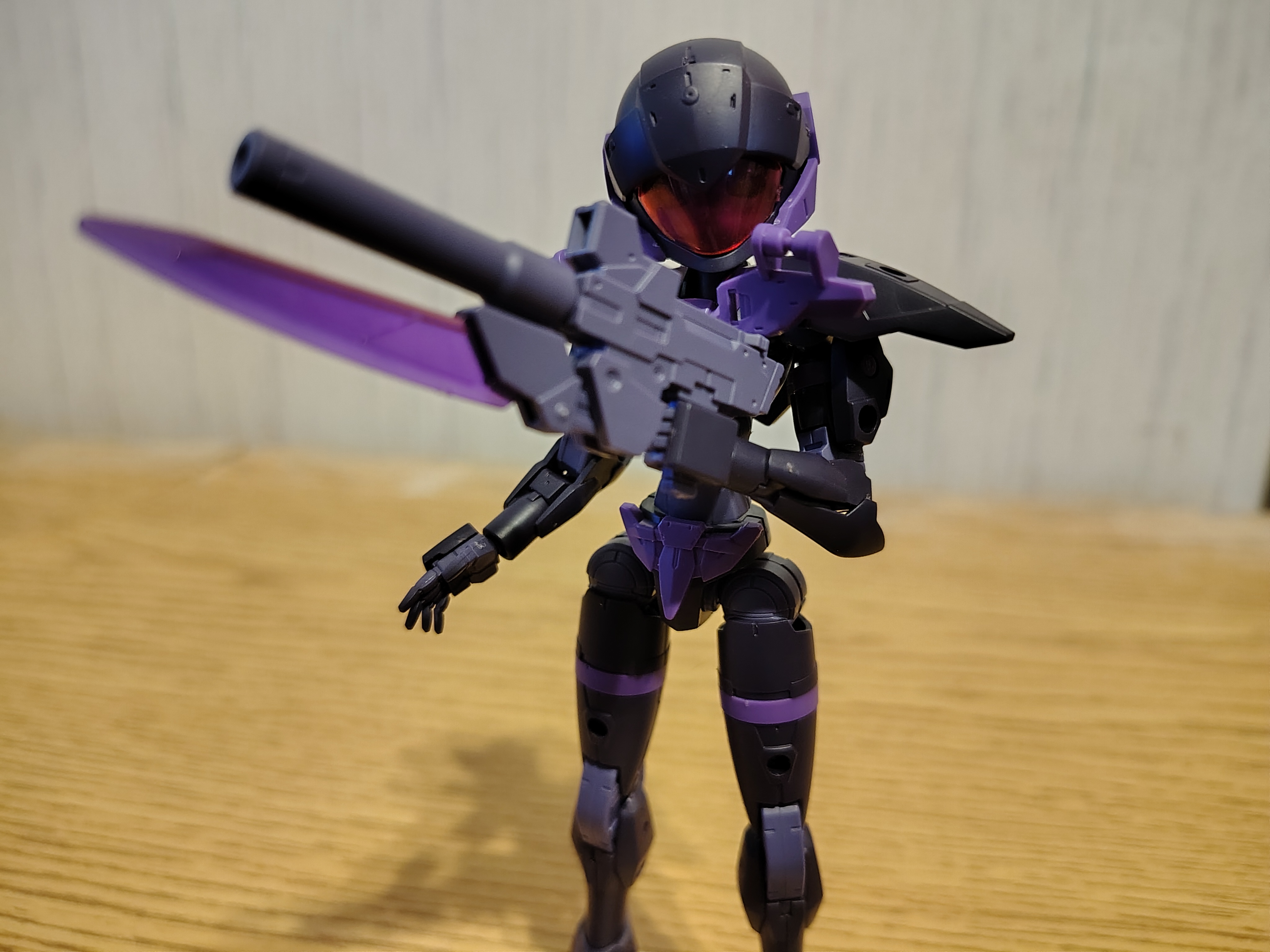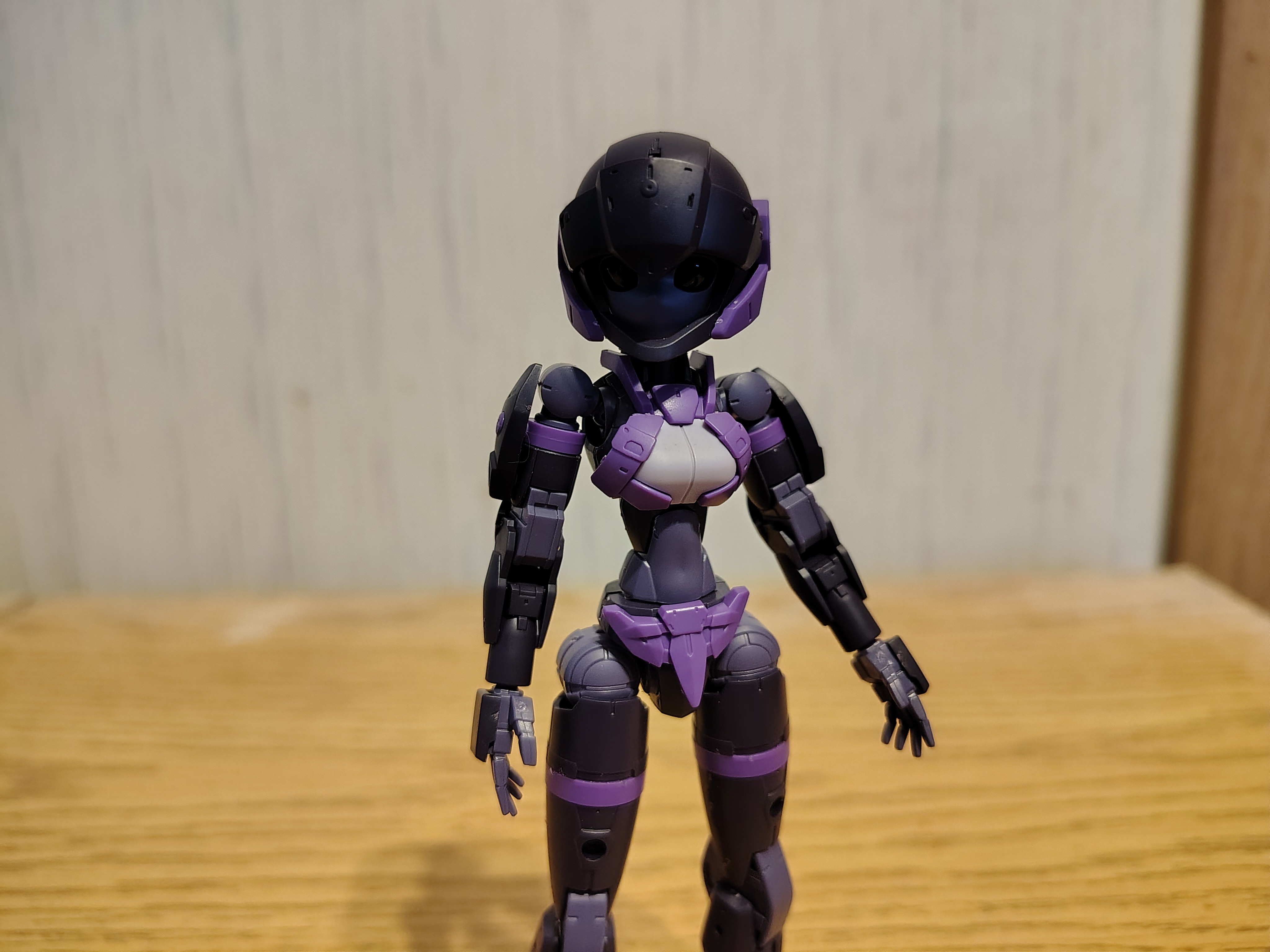So I decided to pick her up too because she was like $22 and I thought she looked cool as Hell. And I was right, she does look cool as Hell. I'm lesbian and a huge sucker for mecha girls. Also her color-scheme of black and purple is just so goth it hurts and I love it.