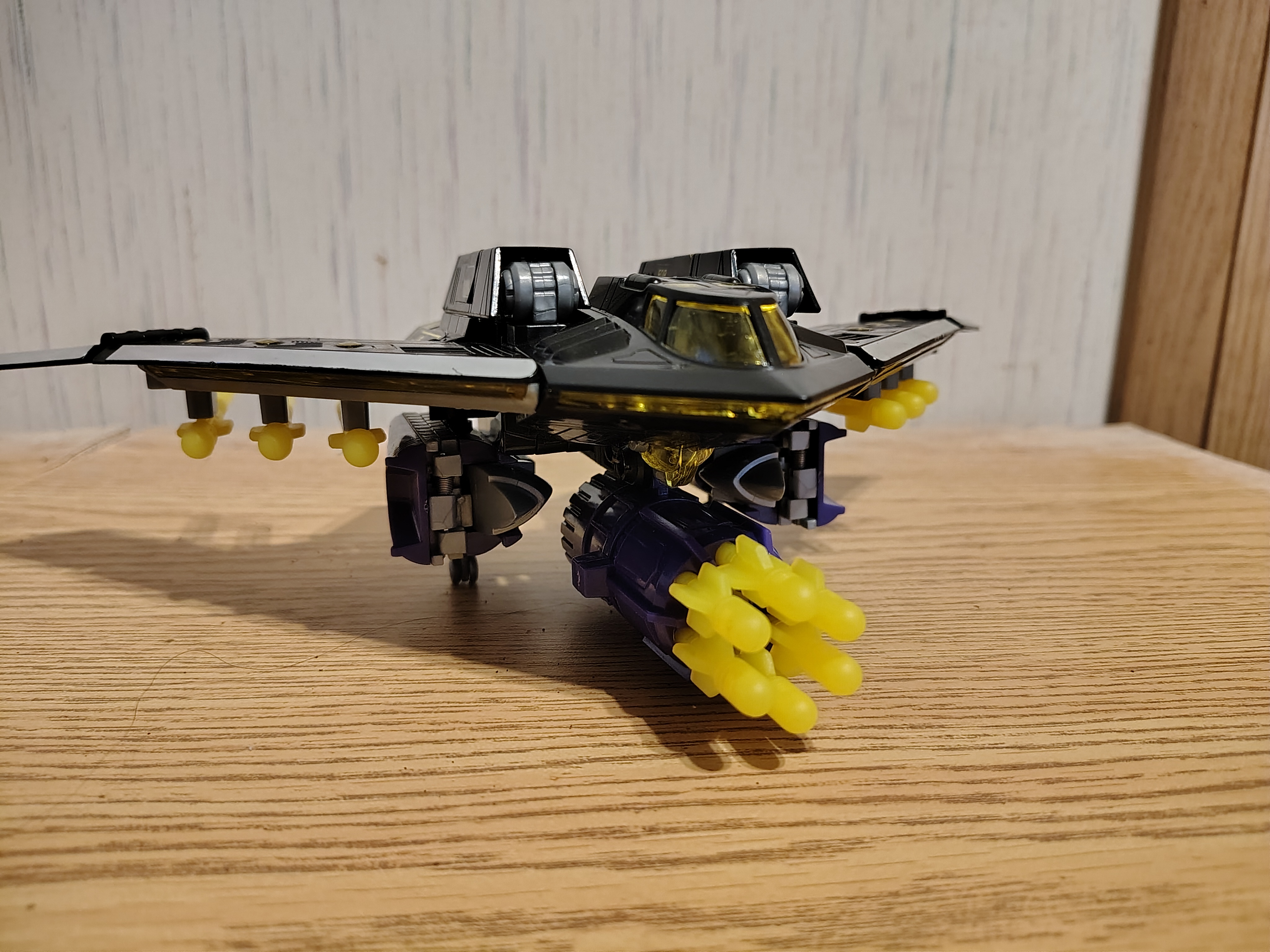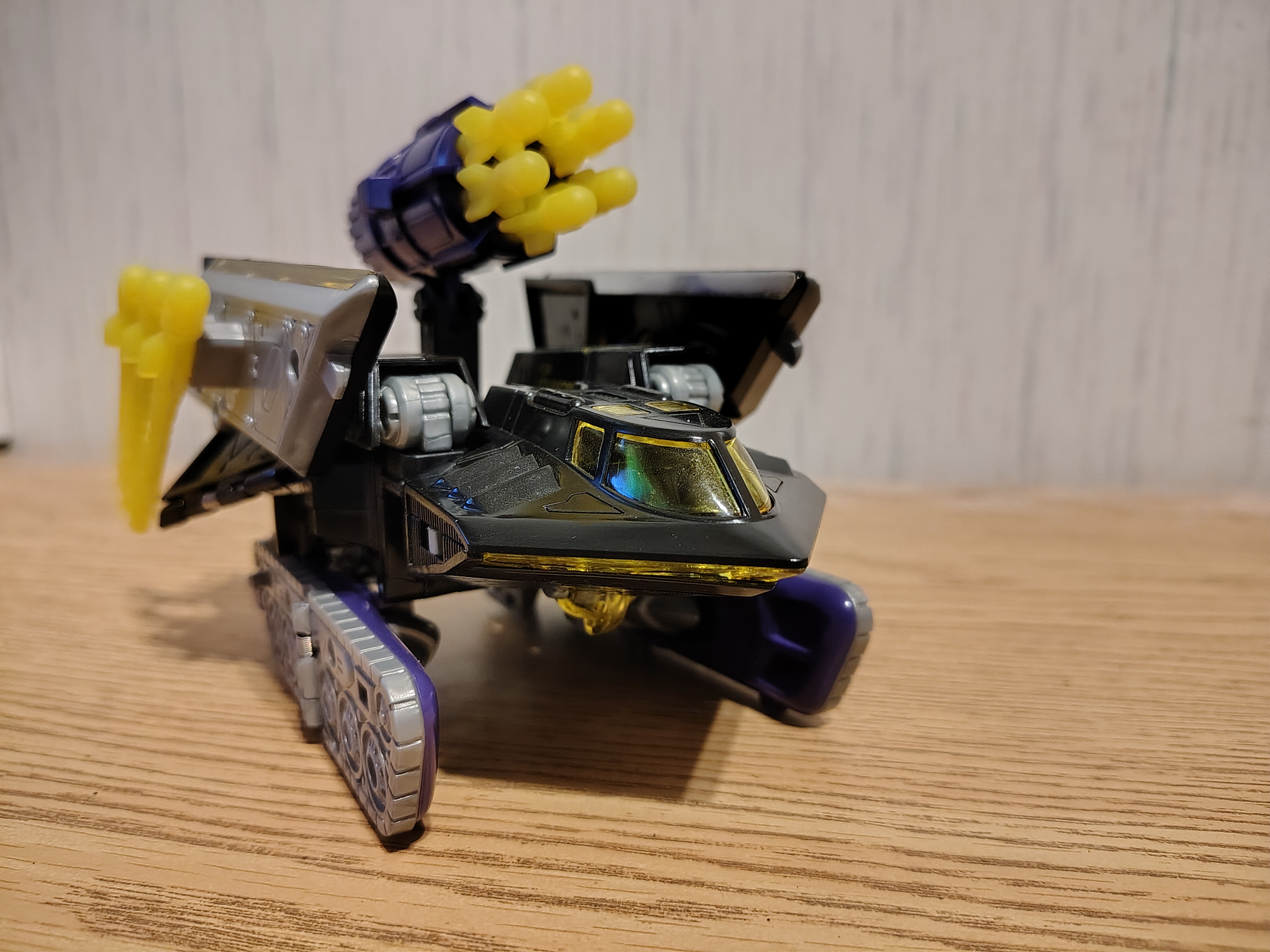 Because of course they'd stick a triple changing gimmick into this set. Although being real, it's not a great tank mode. It is pretty much just 'the stealth bomber mode but with the wings flipped up, the wing tips folded in, the tank treads folded out, and the gatling gun repositioned on top'. But it's still cool.