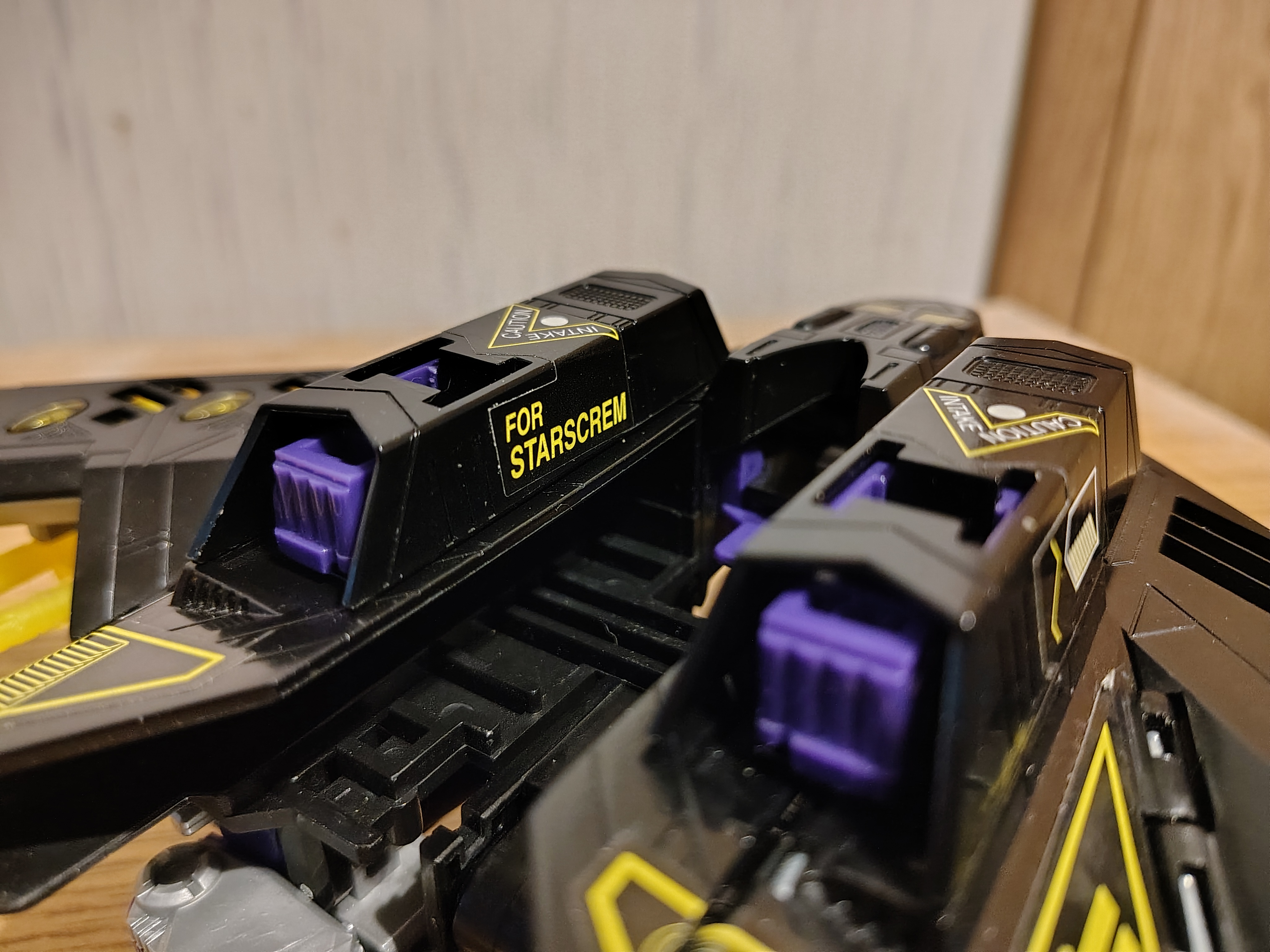 And then the gimmicks too, the goddamn gimmicks. Starscream is the more plain of the two since his gimmicks just boil down to 'He has a pair of missile launchers that you can attach to the sides of the jet mode or wield as guns in robot mode' (I don't have the missles in them because mine have hair trigger launchers).