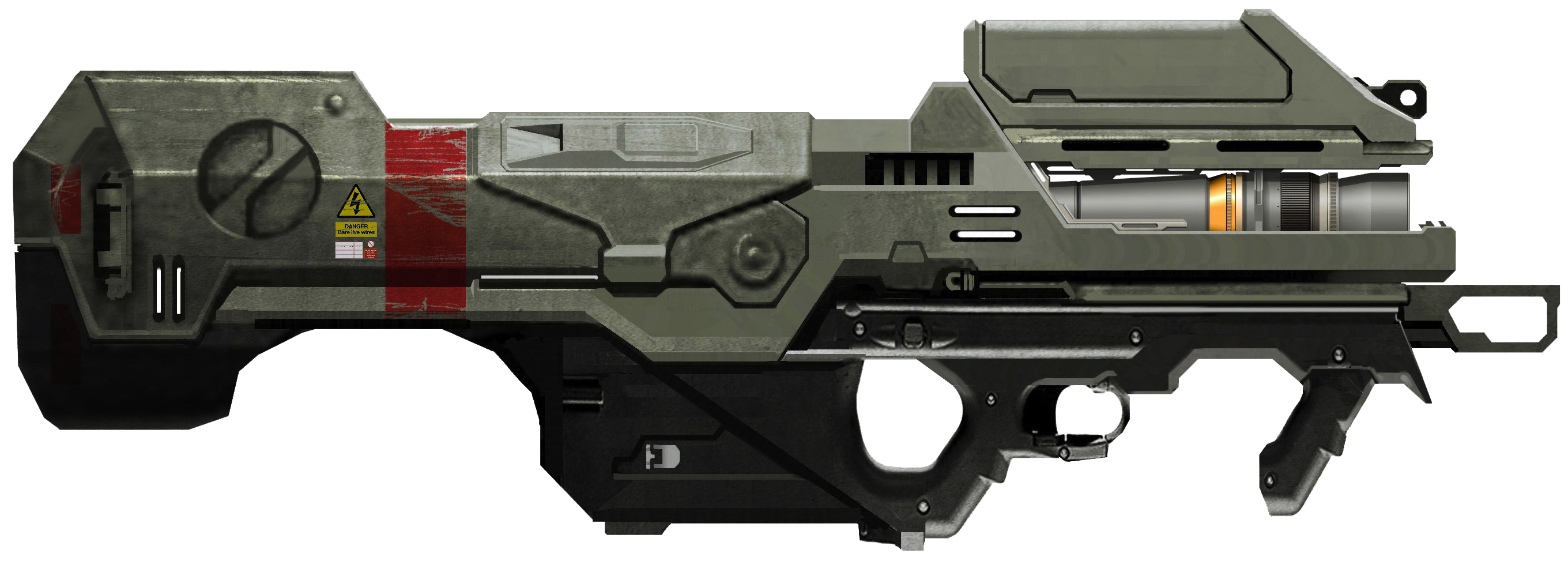 His gun is based on concept art for the Spartan Laser from Halo 3, for some reason. Weird.