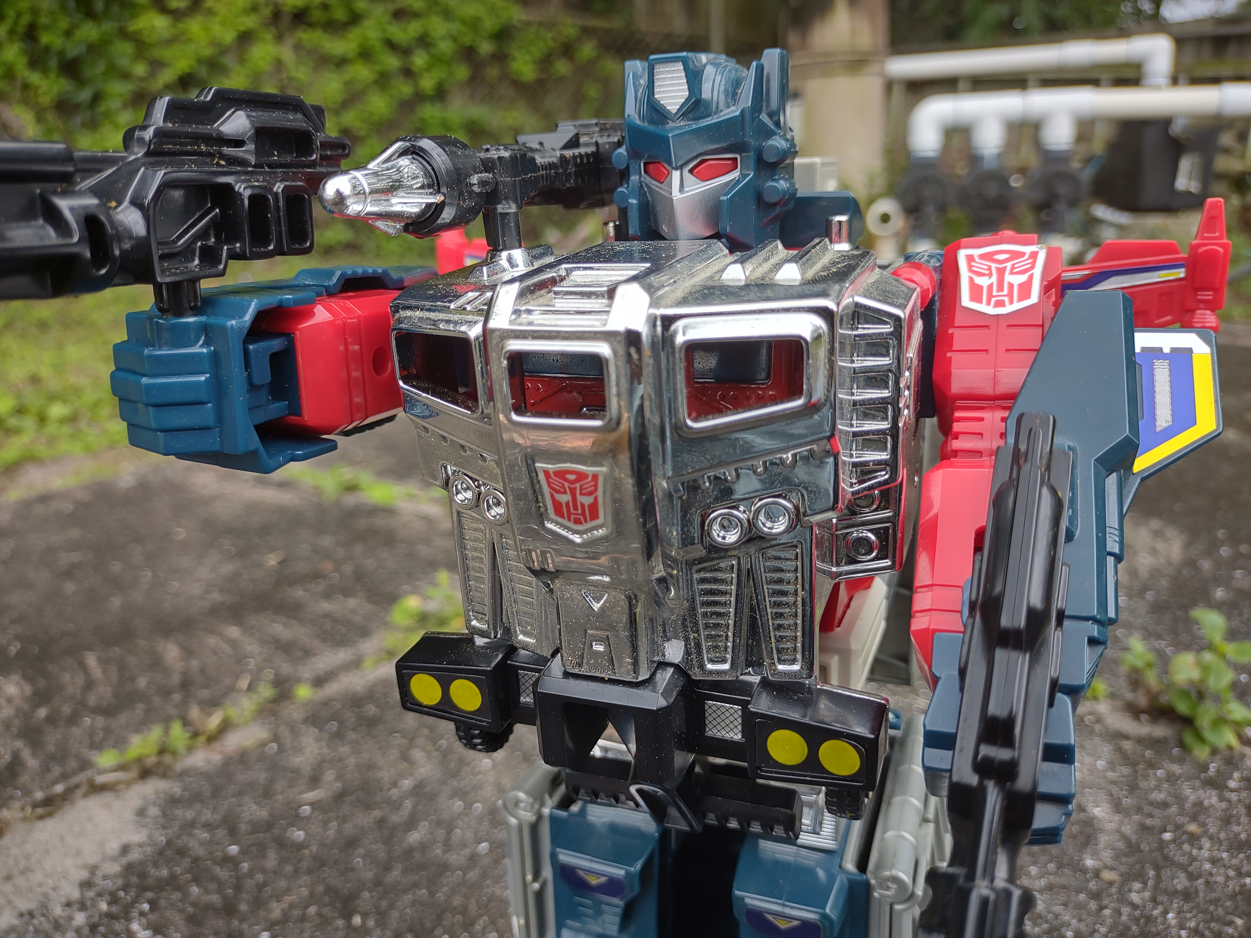 But, alas, I must mention the big issue this reissue suffers from: while it hasn't happen to every single copy, this reissue can be victim to Gold Plastic Syndrome - or specifically Blue Plastic Syndrome, as the blue plastic can become brittle and prone to breakage as the years go on. And it is only this version of the mold that suffers from GPS - the vintage 1988 Japanese original? Totally fine. The Hasbro Powermaster Optimus Prime with Apex Armor reissue that used the God Ginrai mold as its basis? Totally fine.